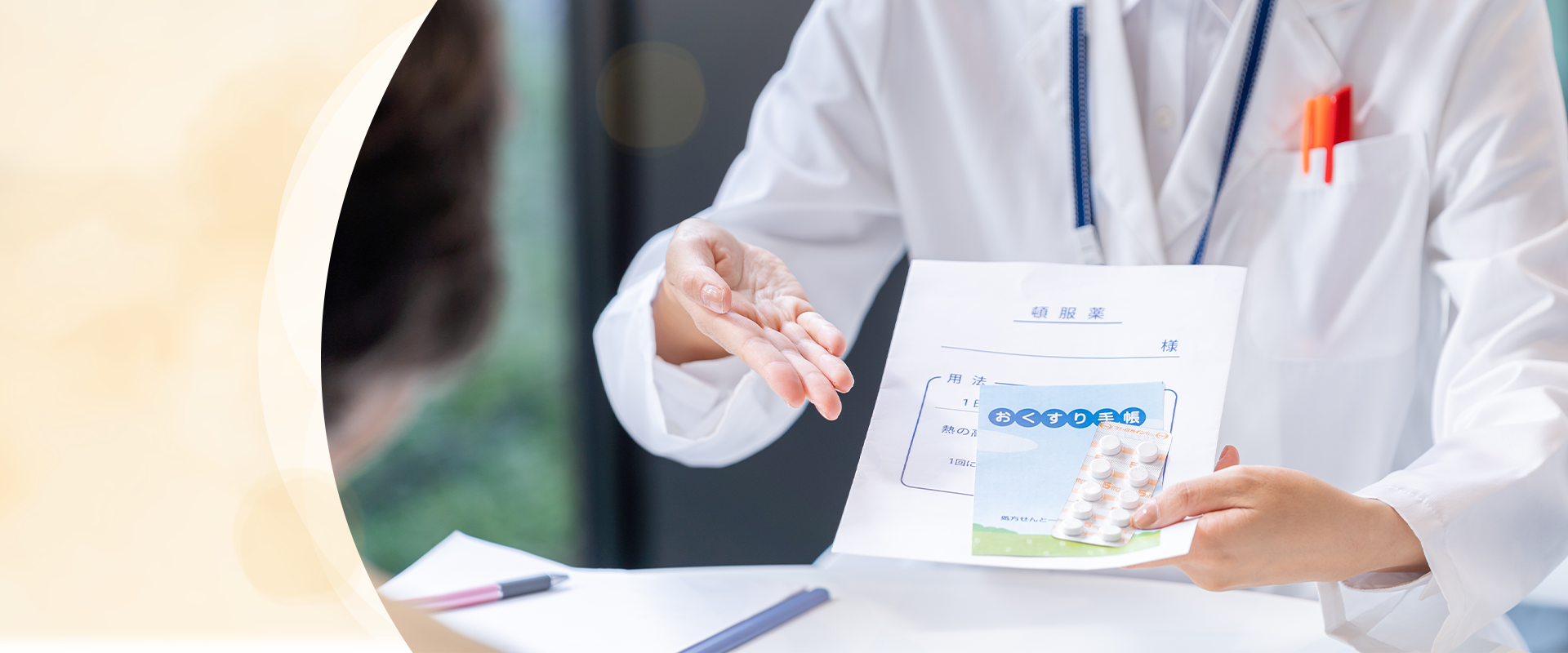 • 患者さんの希望により服用薬剤の種類や服用経過などを記録した「薬剤服用歴の記録」を作成し、薬剤によるアレルギーや副作用の有無を確認するとともに、複数の病院診療所から薬剤が処方されているような場合には、服用薬剤同士の重複や相互作用の有無をチェックします。